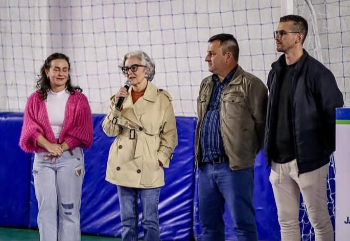 Na sexta-feira, (01/08), o Ginásio de Esportes Nikanor Valmor Stork foi palco da abertura oficial do Campeonato Interbairros de Futsal, edição que leva o nome da Taça Vanderlei Merginio dos Santos em homenagem a esse importante nome do nosso município. Tivemos a honra de contar com a presença de seus familiares, além do prefeito Laerte Silva, que prestigiou a competição.